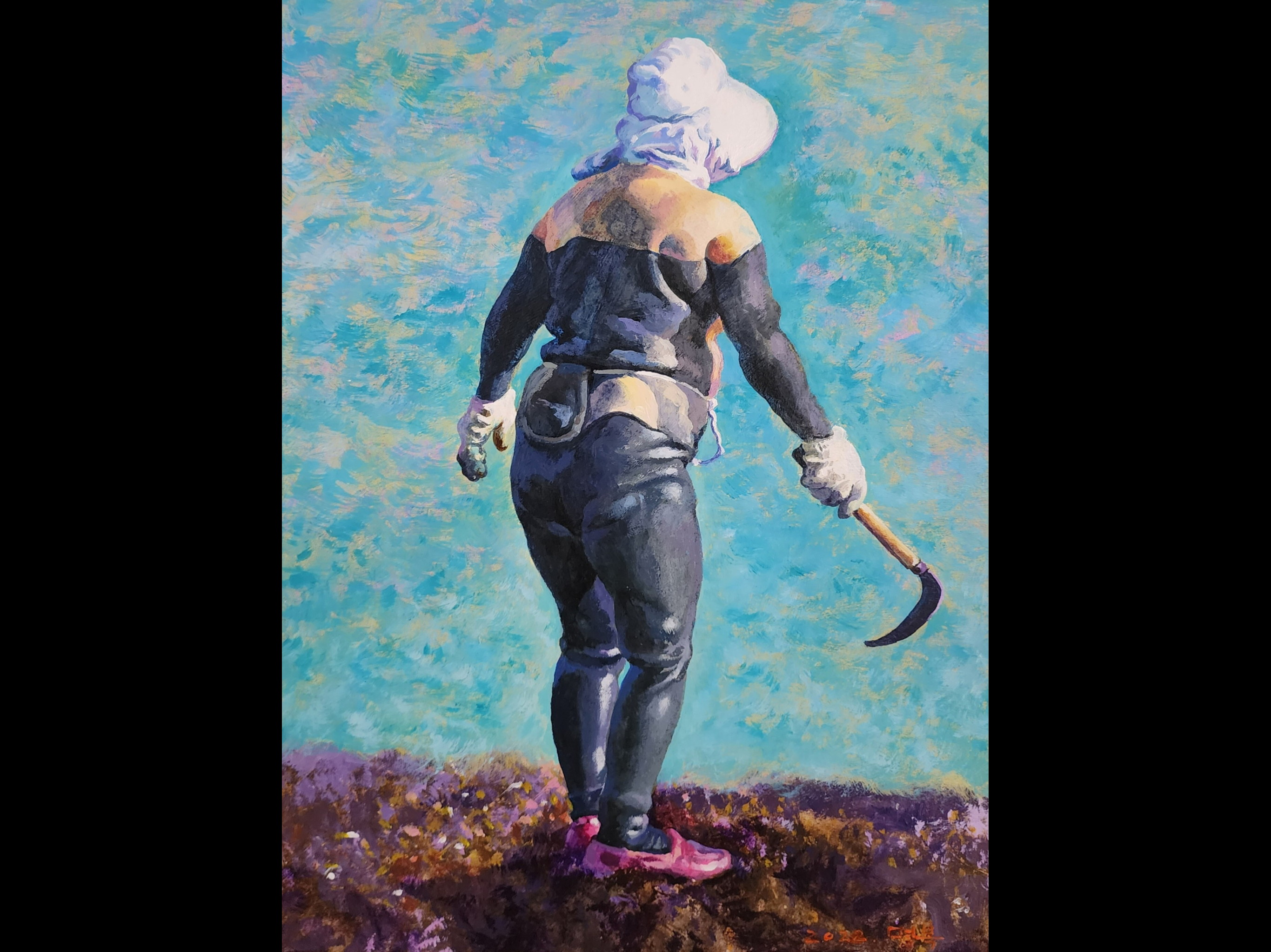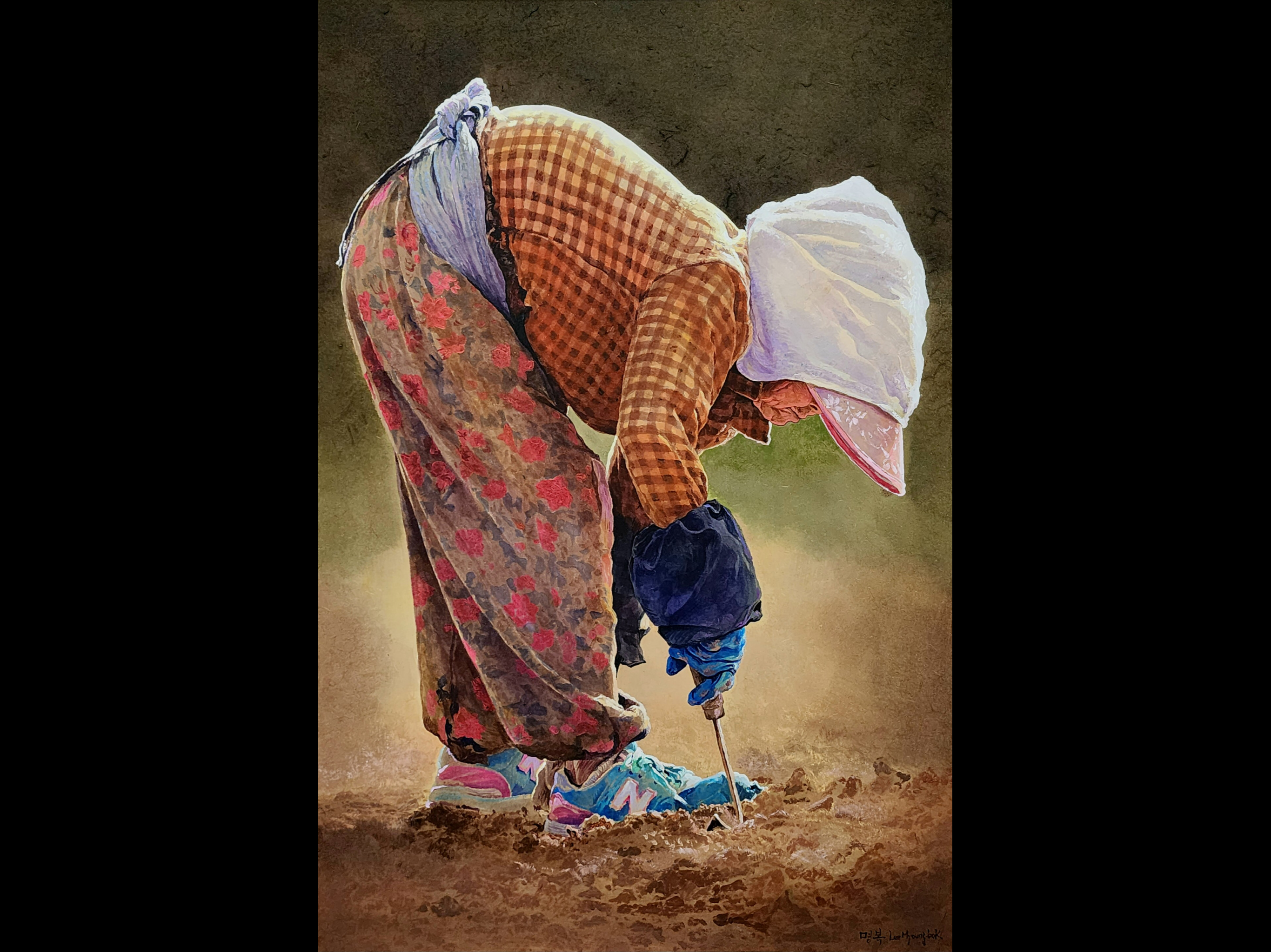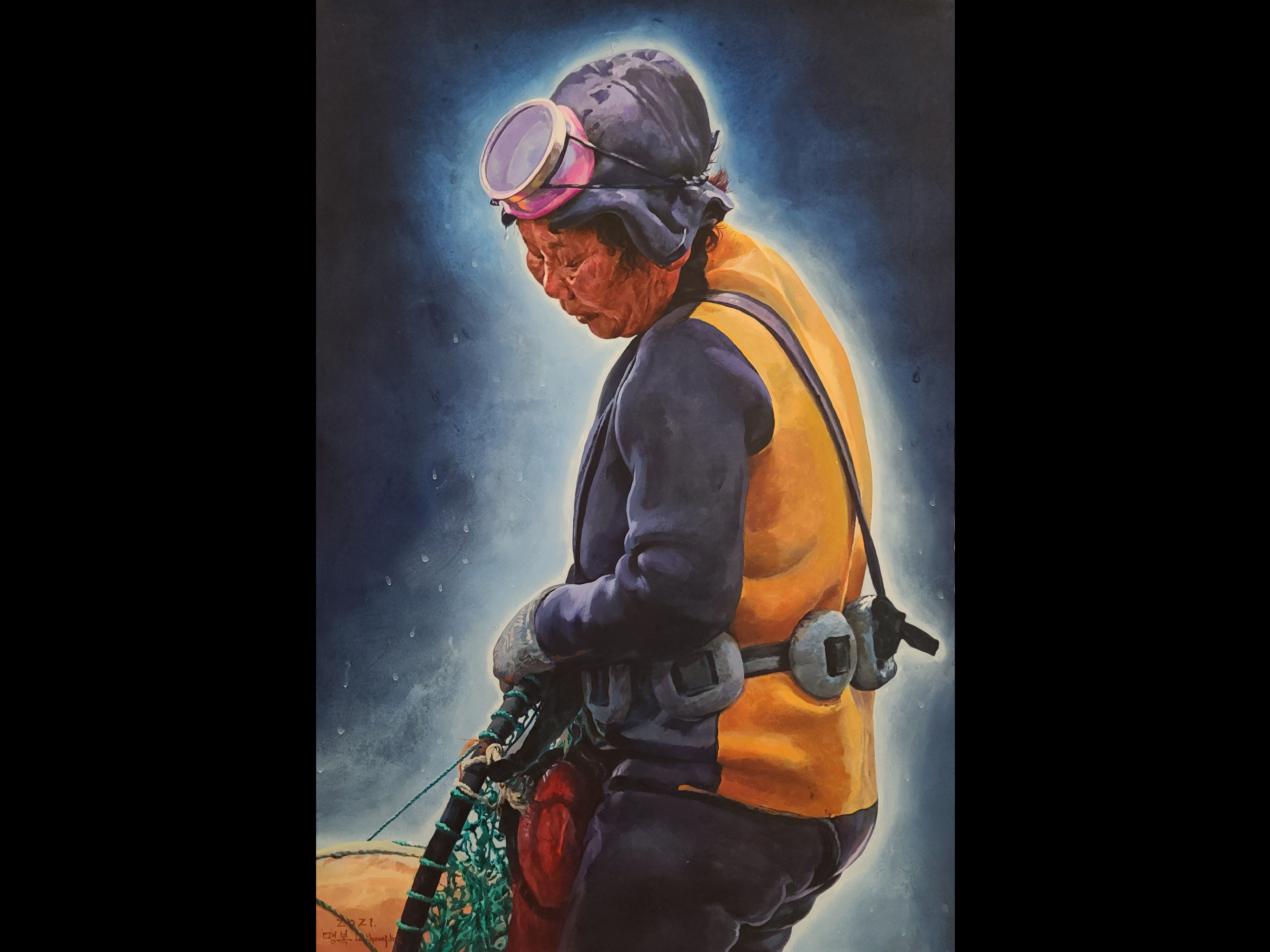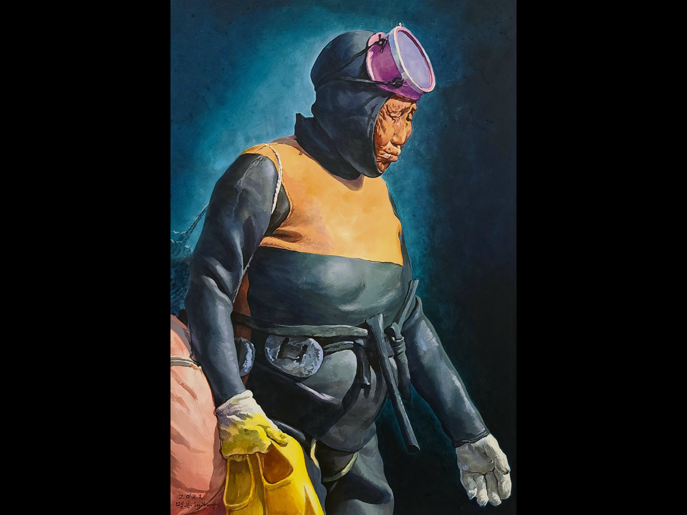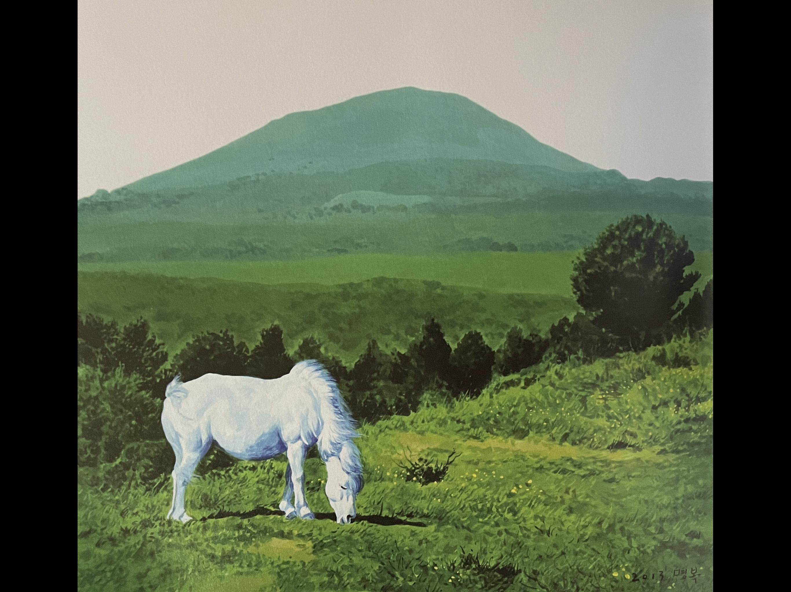 This painter has been capturing the essence of the history, nature and people of Jeju in splendid realist fashion since he moved to the island in 2010. His portraits of haenyeo and women at work in the fields are truly stunning – they perfectly capture everyday scenes of the island’s affable, hardworking halmeoni (할머니 : grandmas – the elderly women of Jeju who invariably have an indominitable spirit and truly impressive work ethic). Mr. Lee has done a series of paintings on the unique Jeju horses known here as Jejumal (제주말), and has depicted Halla Mountain, oreums, and coastal and village scenes, among other subjects.